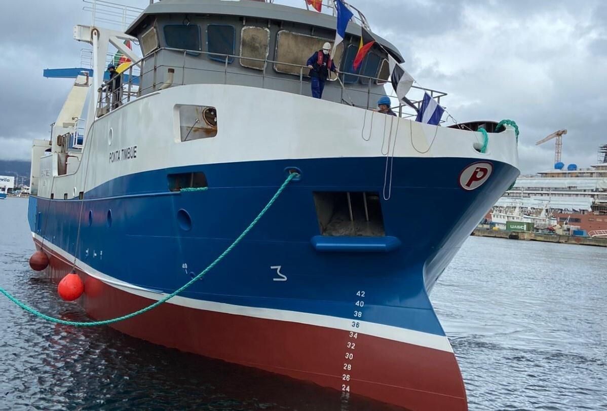 Las instalaciones de Astilleros Armón en Vigo acaban de acoger el acto de botadura del “Ponta Timbué”, otro de los nuevos buques con los el Grupo Nueva Pescanova está renovando parte de su flota de Namibia y Mozambique.