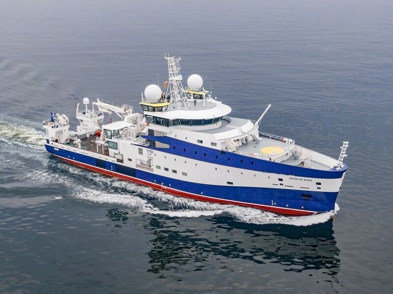 Odón de Buen, named in honour of the oceanography pioneer in Spain and founder of the Spanish Institute of Oceanography (IEO-CSIC) - the entity promoting the project - represents a strategic investment in marine research. “With a length of 84.3 metres and equipped with the latest technology, Odón de Buen is capable of operating in any ocean in the world and deploying its equipment over 6,000 metres deep,” explained María del Carmen García, director of the IEO-CSIC who signed the ship's reception this morning.