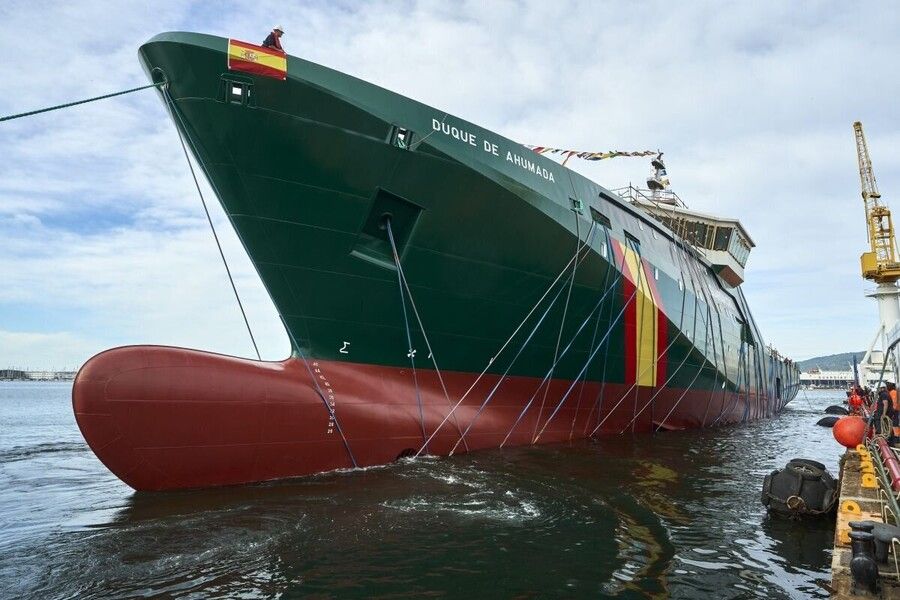 Armon marked a new shipbuilding milestone by launching an oceanic patrol vessel for the Spanish Cost Gard, yesterday at its Ría de Vigo shipyard. "Duque de Ahumada" will be the flagship—both the largest and most advanced—of the Spanish law enforcement agency maritime service fleet.