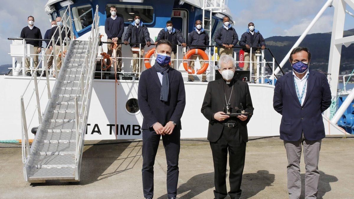 Menos de un mes después de que el “Ponta Macalonga” iniciase su viaje rumbo a Beira, el Grupo Nueva Pescanova ha celebrado esta mañana, en su sede de Chapela (Pontevedra), el acto de entrega de su nuevo barco para Pescamar, su filial en Mozambique. Se trata del “Ponta Timbue”, un moderno tangonero congelador que en los próximos días partirá hacia su destino para unirse a la campaña de pesca de langostino. En la ceremonia han participado José María Benavent e Ignacio González, presidente y CEO del Grupo Nueva Pescanova, respectivamente; así como Luis Quinteiro, obispo de la Diócesis de Tui-Vigo.
