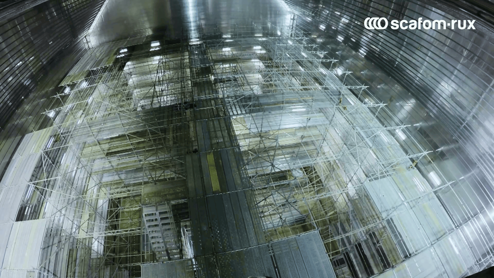 El proyecto requería una plataforma de trabajo segura y eficaz que permitiera al equipo acercarse lo máximo posible a las paredes del tanque sin dañar el material. Para ello, GABADI contrató 800 toneladas de material del sistema de andamiaje modular RINGSCAFF de Scafom-rux. Para evitar la contaminación por suciedad durante la sustitución de la membrana, Scafom-rux alquiló material de andamiaje completamente nuevo para el proyecto.