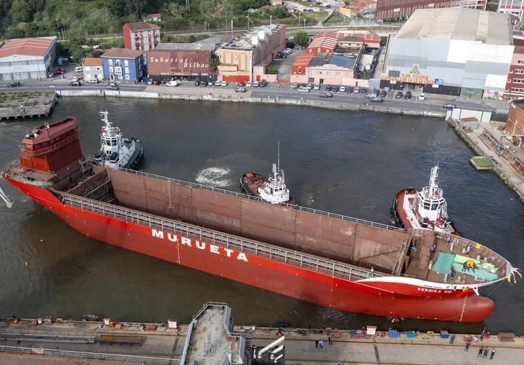 Astilleros Murueta ha botado a la ría en Erandio su nuevo buque, el 'Gernika NM', que transportará por Europa, el norte de África y el Mar Negro carga seca y a granel, y grandes proyectos que por sus dimensiones, peso y complejidad requieren de un sistema especial de transporte.