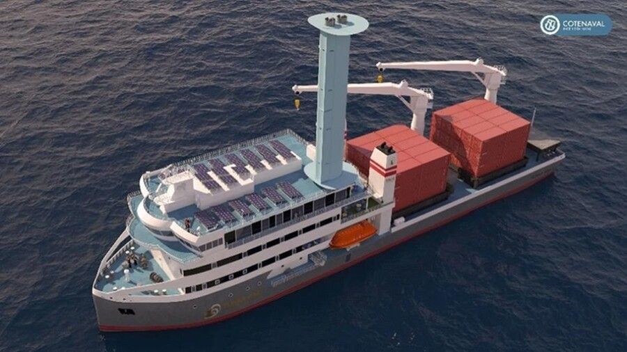 Diseñado por la empresa española Cotenaval, el barco está concebido como un laboratorio flotante hacia la transición energética que contribuirá a la reducción de la huella de carbono, podrá transportar 2.000 toneladas de mercancía y 200 pasajeros. Está previsto que la puesta de quilla, que supone el inicio de la construcción, sea en estos primeros meses del año para que el buque esté operativo en la primavera de 2026.