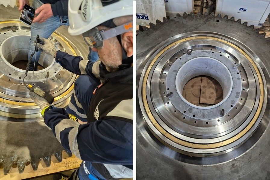En el segmento de los yates de lujo, RKB ha prestado soporte en instalaciones de sistemas de propulsión que incorporan acoplamientos articulados entre las cajas de engranajes y los ejes de propulsión. En una de estas instalaciones, RKB proporcionó asistencia técnica para el montaje de rótulas GEP 500 entre las cajas de engranajes y los ejes de propulsión gemelos. El proceso de instalación implicó enfriamiento con hielo seco, reduciendo temporalmente el diámetro de la rótula para lograr el ajuste por interferencia necesario durante el montaje. Cada caja de engranajes del sistema también incorporaba un rodamiento de gran dimensión 618/1000.