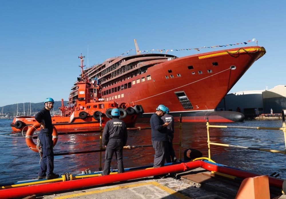 El ferry de 190 metros de eslora y con capacidad para 1.800 pasajeros es el mayor de su clase construido en España. El astillero vigués ya construyó otros dos buques para la naviera canaria